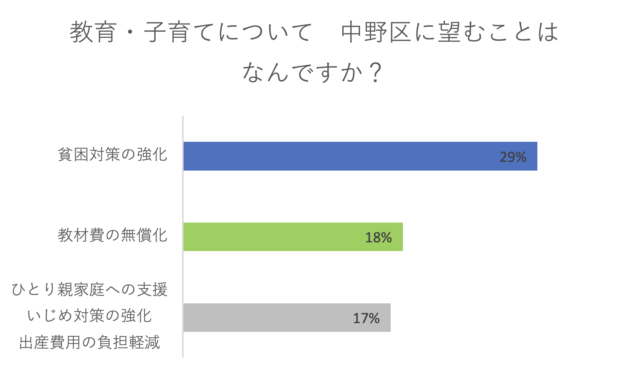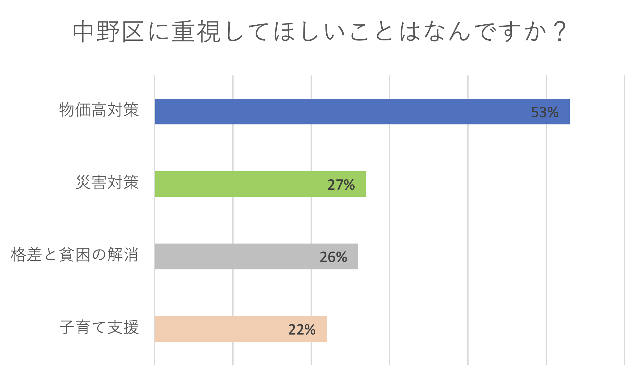 物価高が圧倒的1位でしたが、市民のみなさんの、災害への心配や格差への問題意識、子育てへの不安を感じる結果となりました。