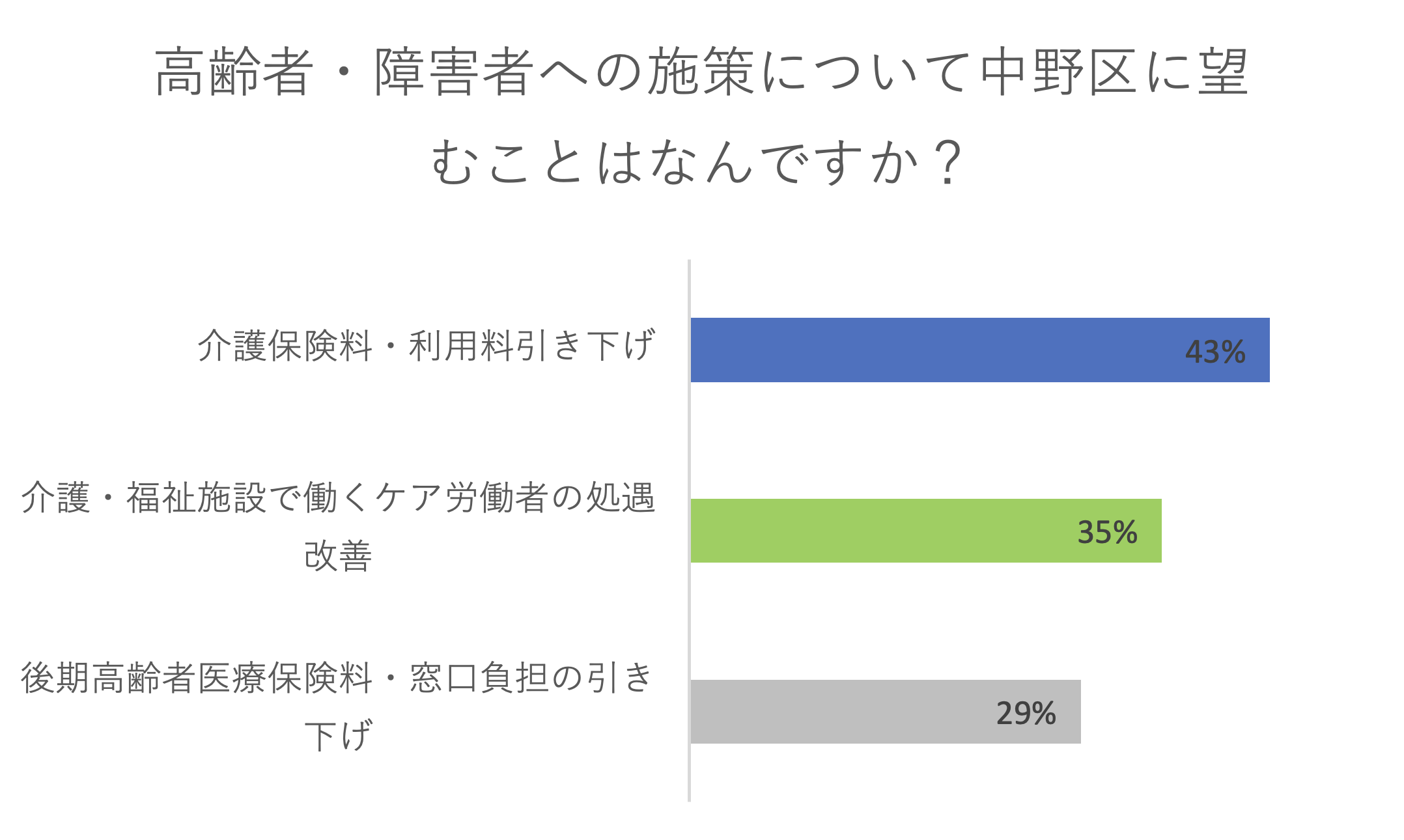 自由記述欄にいただいた声を一部ですがご紹介します。この声を力に「誰一人取り残されないまち中野」を実現するために力を尽くします。・通路にもっとベンチがほしい